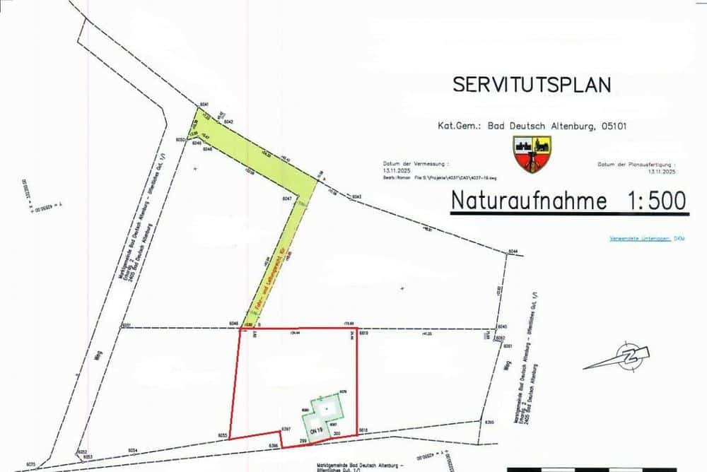 Dem Grundstück wird auch ein Fahr- und Leitungsrecht eingeräumt. (Siehe Beilage 1 Servitutsplan)