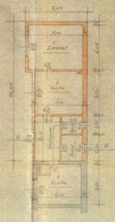 Haus 1 hat ca. 68 m² Wohnfläche und besteht aus Vorraum, Küche, Bad, Speis, noch einer Küche und einem Wohnzimmer.